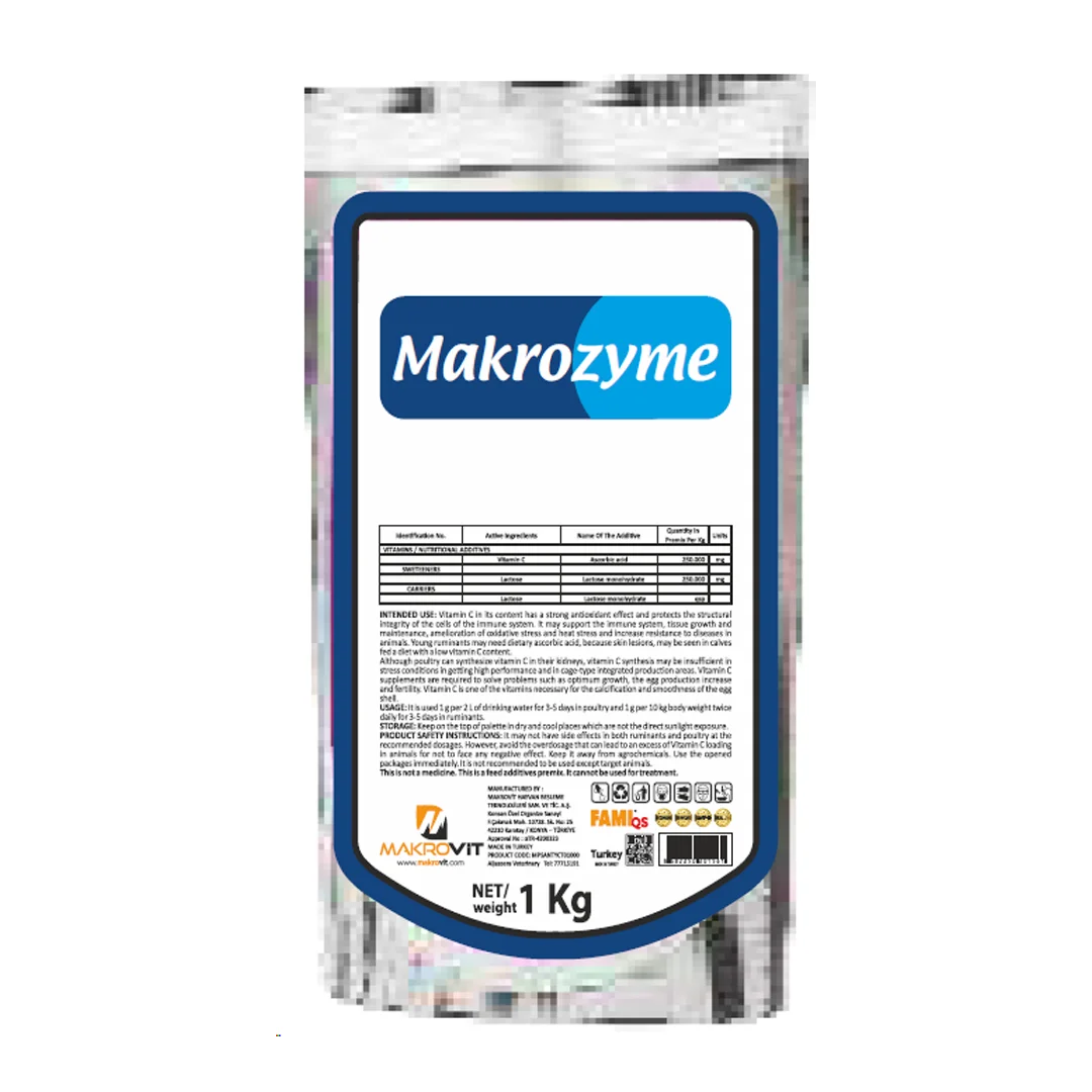 Kullanım Amacı: İçerdiği lizozim, bakteriyel hücre duvarlarının peptidoglikan bileşenini parçalayarak hücre ölümüne yol açan antimikrobiyal bir ajan olarak işlev görür. Bu nedenle, lizozimler hem enzimatik hem de bakteriyolitik aktiviteye sahip olabilir ve büyüme performansını artırmak ve antimikrobiyal olarak kullanılabilir. İçeriğindeki C ve E vitaminleri güçlü bir antioksidan etkiye sahiptir. Bağışıklık sistemini destekleyebilir, doku büyümesi ve bakımını sağlayabilir, oksidatif stresi azaltabilir ve hayvanlarda hastalıklara karşı direnci artırabilir. Kanatlı hayvan yetiştiriciliğinde, bağırsakta koksidiyozise neden olan patojenlerin seviyesini baskılamak ve zararlı bir seviyeye ulaşmalarını önlemek için kullanılır. Ayrıca, ısı stresini azaltmada önemli bir rol oynayabilir. Kullanım: Kanatlı hayvanlar için 2-4 litre içme suyuna 1 gram karıştırılarak kullanılır.
