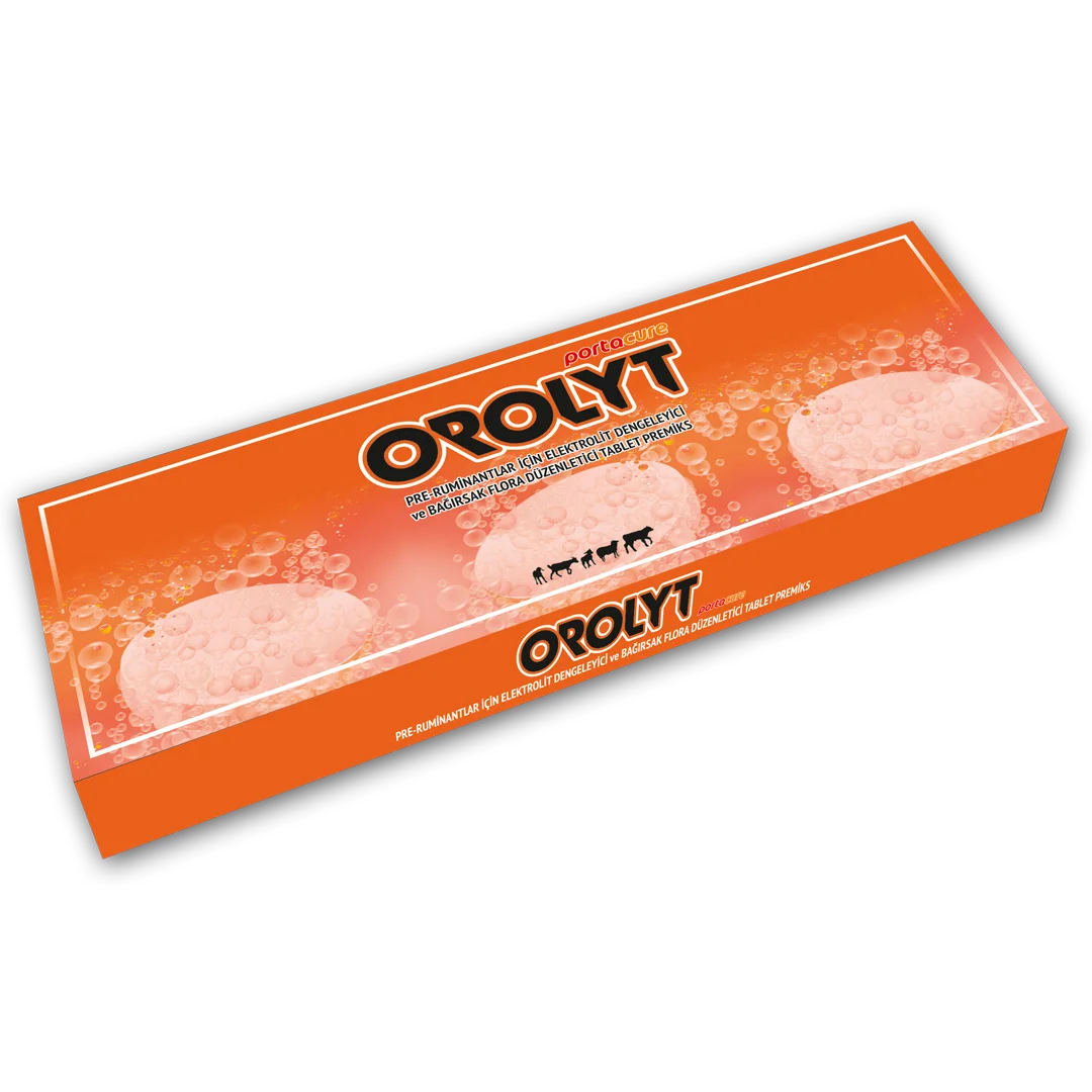 KULLANIM AMACI: Kolostrum'dan sonra buzağı, kuzu ve oğlak gibi süt içen pre-ruminant hayvanlarda, dehidrasyona bağlı elektrolit dengesini sağlamak ve bağırsak florasını düzenlemek için kullanılır. Azalan direncin geri kazanılmasına ve daha iyi bir bağırsak sağlığına katkıda bulunur. KULLANIM TALİMATI: Hazırlanışı: 1 adet Orolyt Efervesan Tablet 1 lt temiz ılık suda (37 °C) eritilir. Çözündükten sonra kullanıma hazırdır. KULLANIM ŞEKLİ: Hazırlanan çözelti pre-ruminant hayvanlara, süt içtikten 4 saat sonra temiz bir biberonla verilir. HAFİF VE ORTA DEHİDRASYONLARDA: Buzağılar'da: Günde 1-2 it çözelti içirilir. Kuzu ve Oğlaklar'da: Günde 100-200 ml çözelti içirilir. ŞİDDETLİ DEHİDRASYONLARDA: Buzağılar'da: Süt veya süt ikame yemi yerine, günde 2-3 defa 2-3 lt çözelti, 2 gün süreyle içirilir Kuzu ve oğlaklar'da: Süt veya süt ikame yemi yerine, günde 2-3 defa 200- 400 ml çözelti, 2 gün süreyle içirilir.