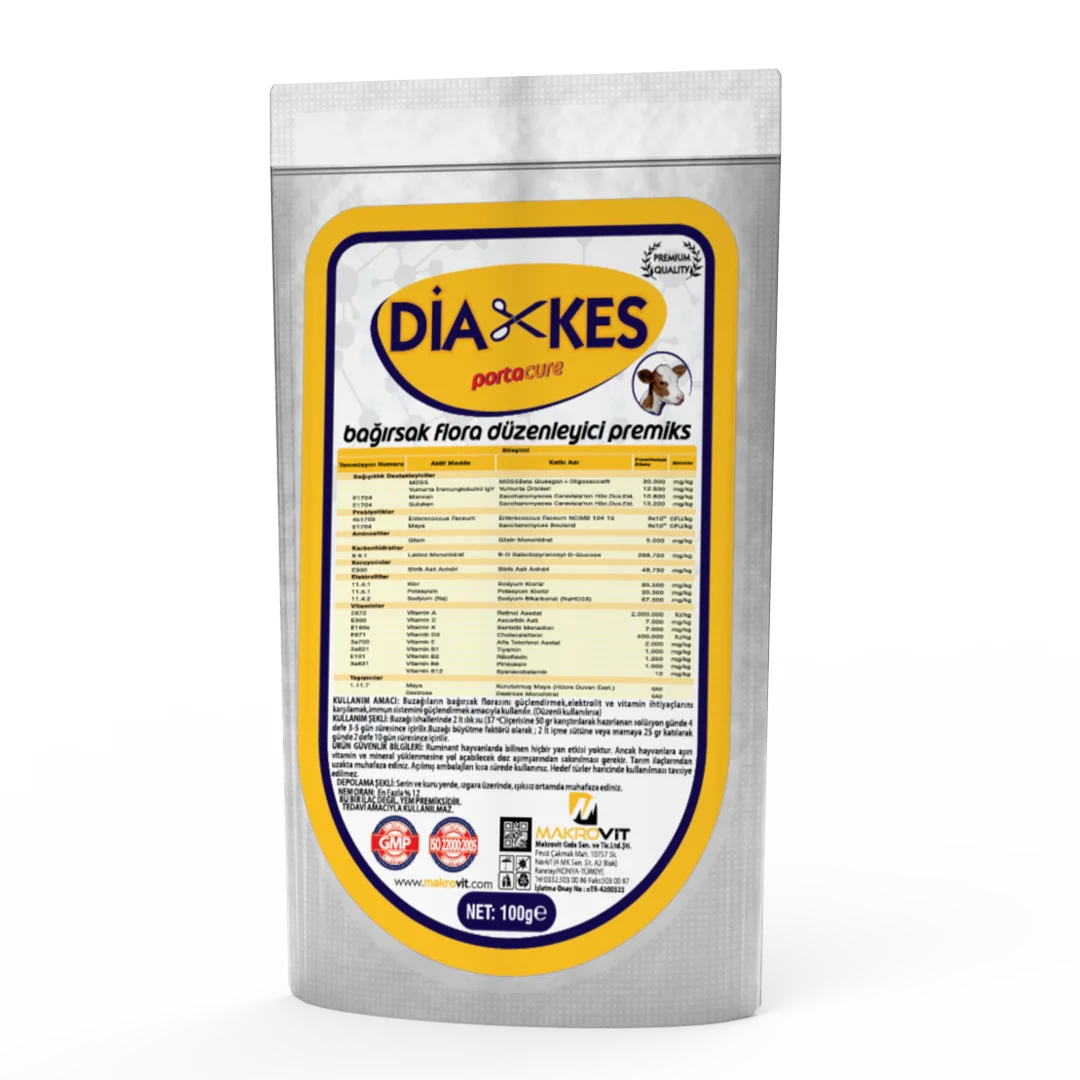 KULLANIM AMACI: Buzağıların bağırsak flora dengesini, ihtiyaç duyduğu vitamin, mikroflora ve elektrolit maddelerini sağlamak ve bağışıklığı olumlu yönde etkilemek için kullanılır. Dışkı viskozitesini arttırmak için normal süt yada süt ikame yemi çözeltisine ve Ilık su ile ağız sütü bitiminde buzağılara biberonla verilir. Bağırsak sağlığına katkı sağlamak dışkı viskozitesini arttırmak için destekleyici premiks olarak kullanılır. KULLANIM ŞEKLİ: Buzağılarda dışkı viskozitesini arttrmak için, 2 litre Ilık su (37 derece) içerisine 50 gr karıştırılarak hazırlanan çözelti 3-5 gün süreyle günde 4 defa verilir. Buzağı büyütme destekçisi olarak 2 it süt yada süt ikame yemi çözeltisine 25 gr katılarak 10 gün boyunca günde 2 defa verilir.