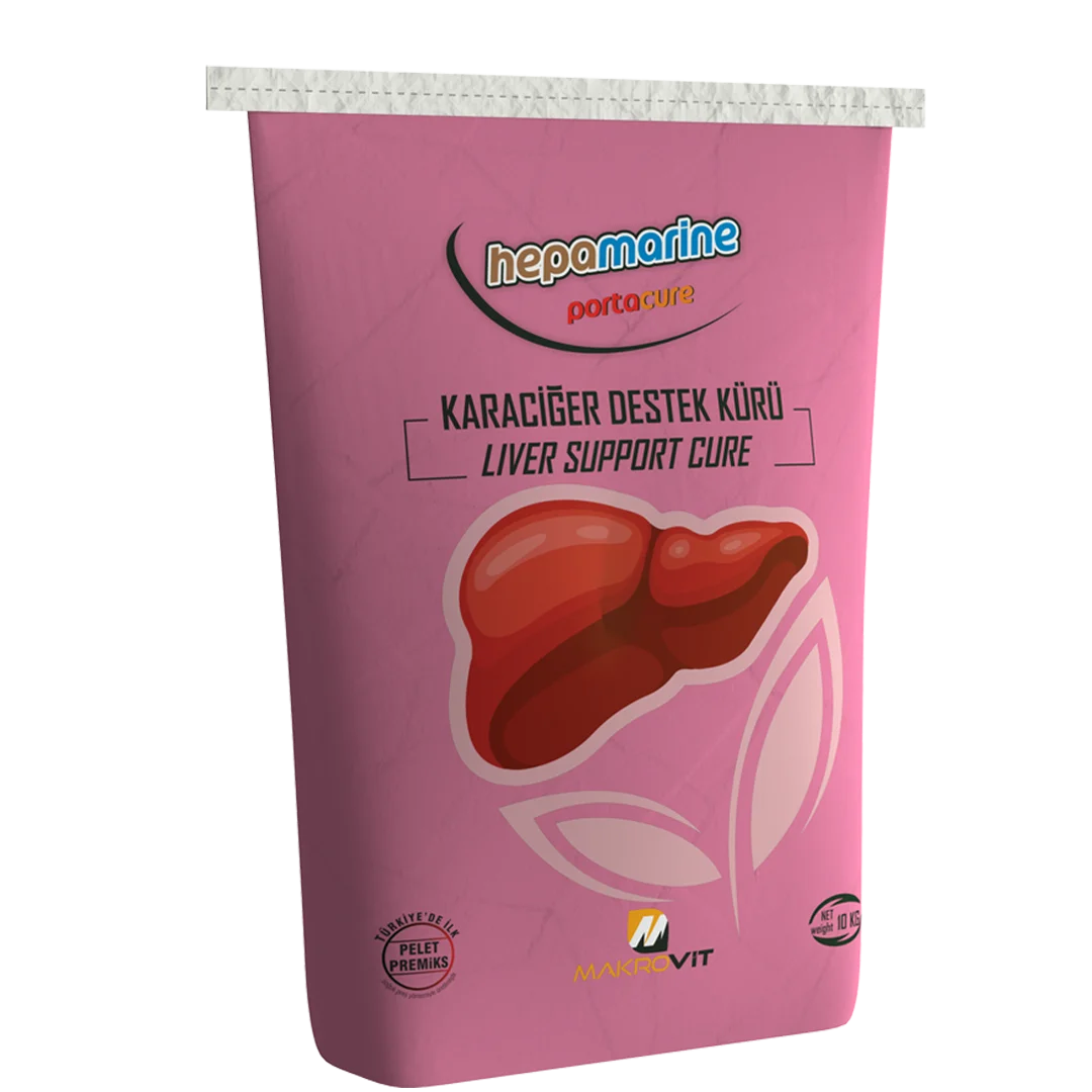 KULLANIM AMACI: HEPAMARINE yüksek vitamin ve iz mineral içeriği yanında karaciğer koruyucu bitki ektraklan (Slimarin, Cynarin gibi) ve metil vericileri (Kolin, metionin gibi) içermektedir. Karaciğer koruyucular ilgili vitaminler ve iz minerallerle birlikte karaciğer sağlığını korumakta, yağ metabolizmasını iyileştiren vitaminler (niasin gibi), metil vericileri karaciğerden yağ infiltrasyonunu artırmak suretiyle karaciğer yağlanmasını azaltmaktadır. Gebeliğin son haftalarında ve erken laktasyonda yetersiz ve dengesiz besleme, metabolik hastalıklar, çevresel ve besleme kökenli stresin yaratacağı kondisyon kayıpları karaciğerin yağ yükünü artırabilmektektedir. Bu nedenle HEPAMARINE bu dönemlerde koruyucu olarak kullanılabildiği gibi ketotik ve yağlı karaciğer sendromu olan hayvanlarda tedaviye katkı sağlamaktadır. Ayrıca iştahtaki iyileşme ve yüksek vitamin ve mineral içeriği ile üreme performansındada olumlu etki sağlar. KULLANIM ŞEKLİ: HEPAMARINE doğum öncesi son ve doğum sonrası ilk hafta 150 g günlük olarak yeme karıştırarak verilebilir. Yüksek kondisyonlu kurudaki ineklerde özellikle kullanılmalıdır. Laktasyonun İlk 60 günlük döneminde karaciğerde yağ, toksin ve serbest radikal yükünün yüksek olması nedeniyle 15- 20 günde bir 75-100 g/gün yemlerine karıştırılarak verilmesi koruyucu olarak önerilebilir. BİLEŞİMİ: 3a672a Vitamin A (Retinol Asetat) 800.000 lu/kg. 3a671 Vitamin D3 (Cholecalsiferol) 200.000 lu/kg. 3a700 Vitamin E %0,3 (Alfa Tokoferol Asetat), 3a821 Vitamin B1 %5x10⁻² (Tiamin %98), 3a880 Vitamin B7 % 1x10⁻² (D-Biotin %2), Vitamin B12 %8x10⁻⁴ (Siyanokobalamin %1), E1 Demir %4x10⁻¹ (İron Sulphate %30), E4 Bakır %13x10⁻² (Copper Sulphate%25), E5 Mangan %4x10⁻¹ (Manganese Sulphate %32), E6 Çinko %6,7x10⁻¹ (Zinc Sulphate %35), E8 Selenyum %3,3x10⁻³ (Sodyum Selenit %45), 3b815 Şelatlı Selenyum %1,7 x 10⁻³ (L- Selenomethionine %0,30), E2 İyot %0,4x10⁻² (Calciumlodate %62), E2 şelatll iyot %0,01 (EDDl/Etilen Diamin Dihidro lodide %79,5), 3b802 Kobalt %0,8x10⁻² (Cobalt Sulphate %20), 3a890 Korunmuş Kolin %5,5 (Protected choline %25), 3a314 Korunmuş Niasin %3,5 (Protected Niacin %55), 3.2.1 Korunmuş Lizin %0,5 (Protected Lysine %40), 3c301 Korunmuş Metionin %5 (Protected methionine %50), Silymarin %2,5 (Silybum marinum of extract %99), Cynarin %1,5 (Cynara Scolymus of extract %98). Toksin Bağlayıcı (Binders): Bentonit / Montmorillonite %7,5. Antioksidanlar (Antioxidant): BHA %0,1 (Butylated Hydroxyanisole). Taşıyıcılar(Carriers): Bonkalit (Wheat Middlings), Yonca Unu (Alfalfa Meal).