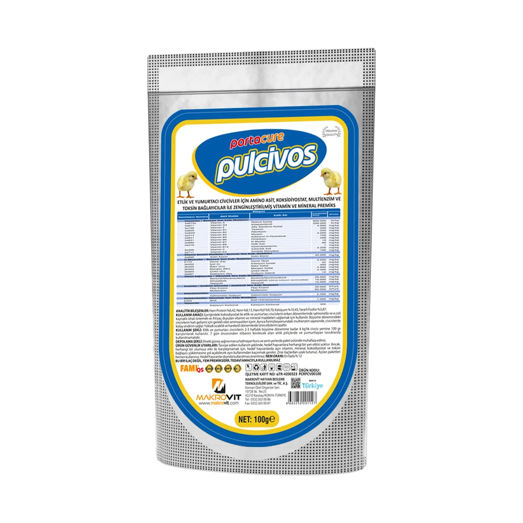 KULLANIM AMACI: Etlik ve yumurtacı civcivlerin erken dönemlerinde yaşayan salmonella ve e.coli kaynaklı ishallerin önlenmesi ve vitamin mineral ihtiyacını karşılamak amacıyla kullanılır. Büyüme dönemindeki civcivlerin hızlı gelişebilmesi amacıyla gerekli olan aminoasitleri içermektedir. Ayrıca multienzim sayesinde civcivlerde sindirim kolaylığı sağlamaktadır. Sıcaklık ve taşınma gibi dönemlerde stres faktörünün önüne geçilmesinde faydalıdır. KULLANIM ŞEKLİ: Etlik ve yumurtacı civcivlerin 2-3 haftalık büyüme dönemlerine kadar : 4 Kg civciv yemine 100 gr karıştıralarak kullanılır. Kesime yakın etlik piliçlerde ve yumurtlayan tavuklarda kullanılmamalıdır.