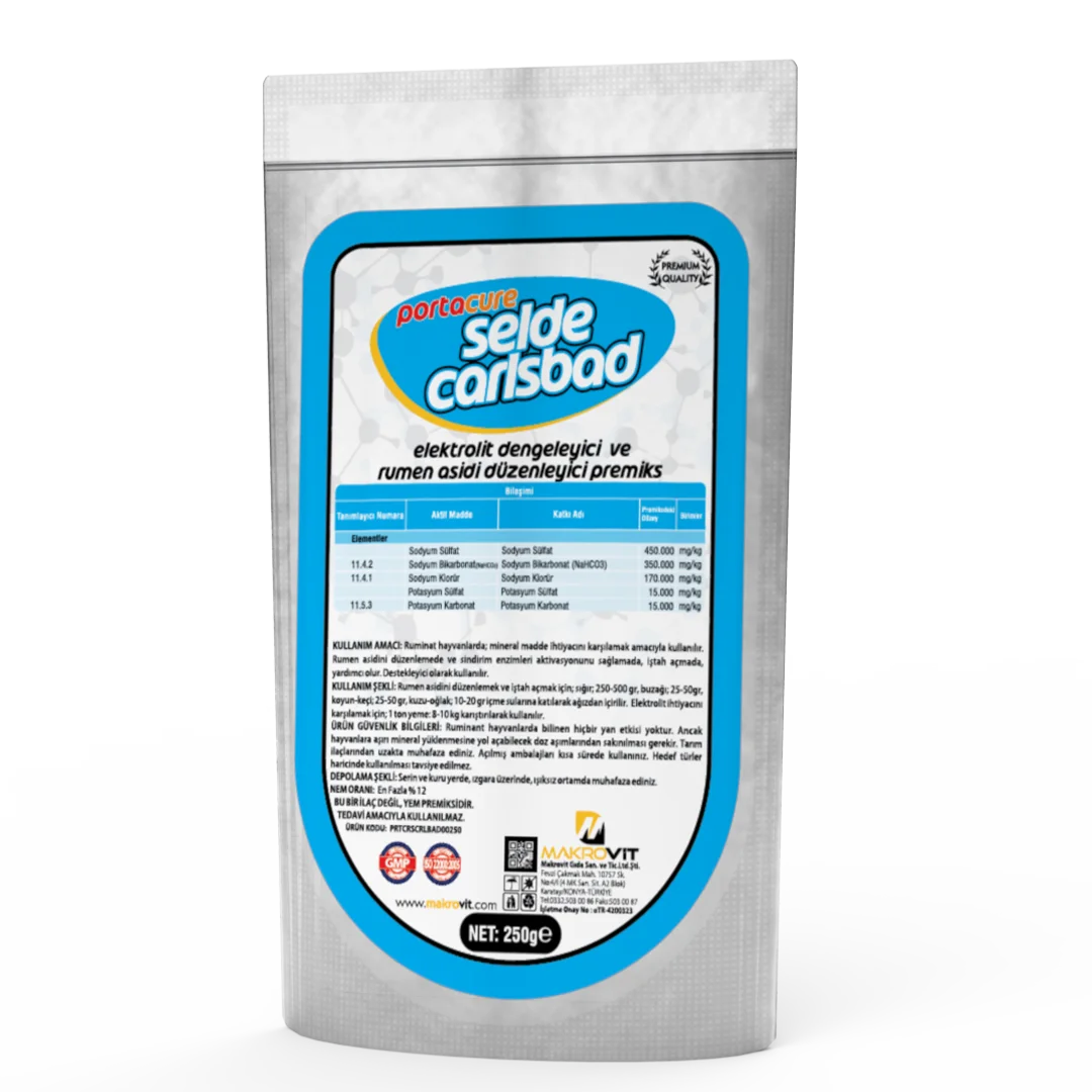 KULLANIM AMACI: Ruminant hayvanlarda ihtiyaç duyulan tampon ve elektrolit maddelerini sağlar. Rumen asidi' nin düzenlenmesine, sindirim enzimlerinin aktivasyonunun sağlanmasına ve iştah açmada yardımcı olur. Destekleyici premiks olarak kullanılır. KULLANIMI: Rumen asidi'ni düzenlemesi ve iştah açması için; Sığır : 250-500 gr Buzağı : 25-50gr Koyun-Keçi: 25-50 gr Kuzu-OğIak: 10-20 gr içme suyuna katılarak ağızdan verilir. Elektrolit ihtiyacı için 1 ton yeme 8-10 kg karıştırılarak kullanılır.