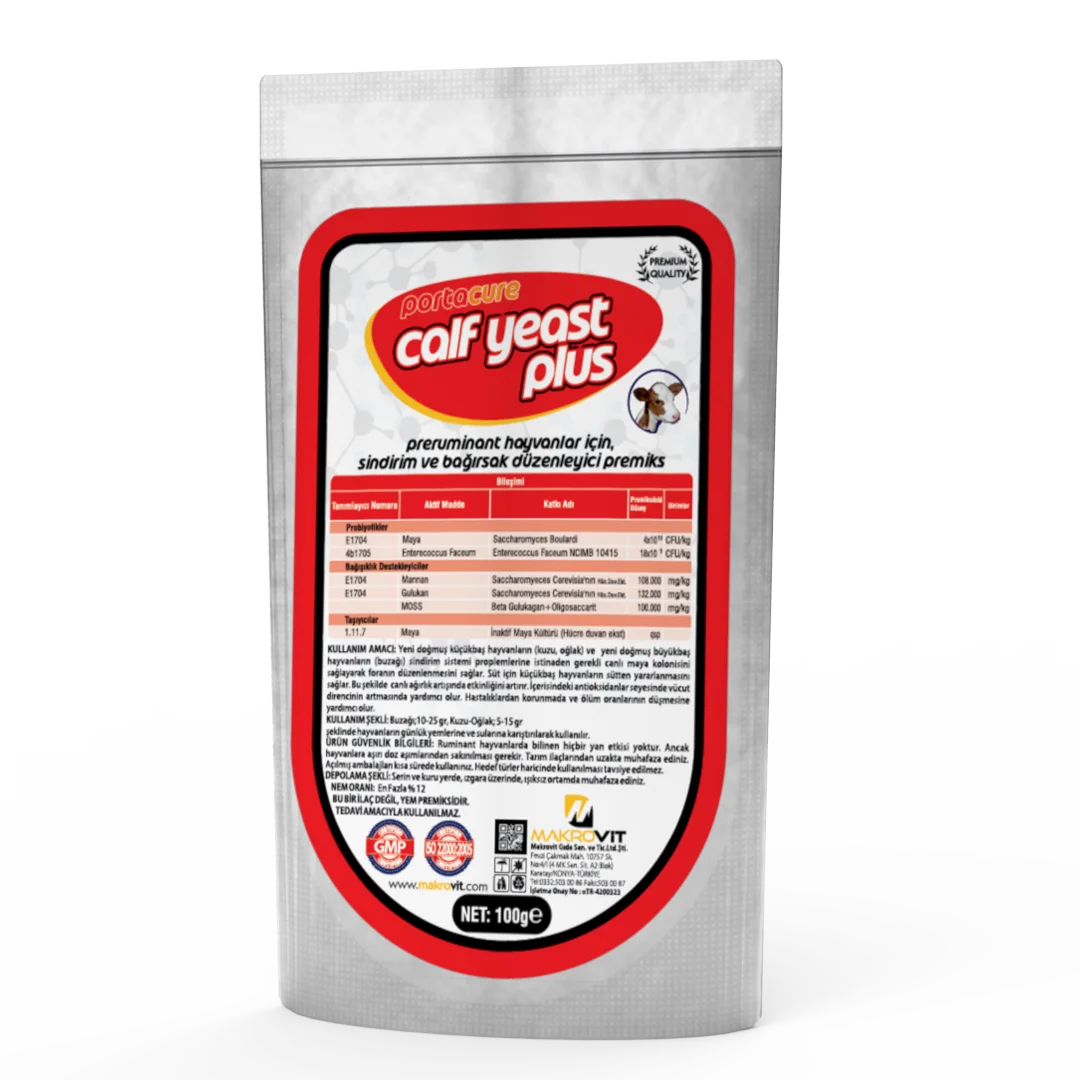 KULLANIM AMACI: Yeni doğan küçükbaş (kuzu-oğlak) ve yeni doğan büyükbaş (buzağı) hayvanların bağırsak florasının daha iyi olması için gerekli canlı maya kolonisini sağlar ve bağırsak florasını düzenler. Yeni doğan ruminantların anne sütünden faydalanmalarını sağlar. Bu sayede büyümenin artmasını destekler. Formülasyonundaki katkı maddeleri bağışıklığa ve daha iyi bir hayvan sağlığına katkıda bulunur. KULLANIM ŞEKLİ: Hedef hayvanların günlük yemlerine ve içme sularına karıştırılarak kullanılır. Buzağı:Günlük 10-25gr,