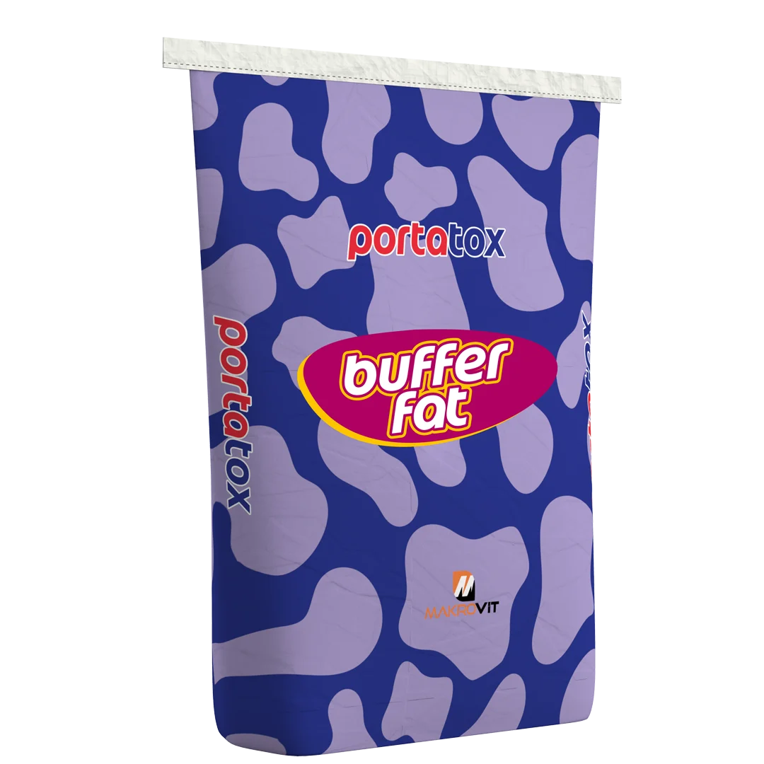KULLANIM AMACI: Buffer fat; Sağmal inekler İçin sıcaklık stresine bağlı olarak, süt yağı düşen hayvanların süt yağının artmasına yardımcı olur. Canlı organizmaların populasyonunun artmasını sağlar. Rumen pH'ını optimum seviyede tutar. Süt miktarının artmasında fayda sağlar. İçerisindeki mayalar ve rumen düzenleyiciler sayesinde rumen ve bağırsak mikroflorasım düzenler. Rumen asidozuna bağlı laminitisi (topallık) önler. Bu sayede yemden yararlanmayı artırır. Toksinlerin bağlanmasıyla toksin zehirlenmesine karşı hayvanları korur.